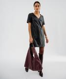 Robe courte manches courtes en cuir imitation femme noir