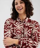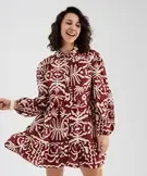 Inspirée de la robe chemise, cette robe courte vous assure une allure élégante et un confort parfait ! La robe femme possède un col chemise, une boutonnière nacrée et de sublimes manches longues blousantes terminées par des élastiques aux poignets. Cette robe ample est confectionnée majoritairement dans une viscose fluide et subtilement froissée, avec de larges motifs organiques contrastants. Fronces à la taille, sur le dessus et le devant des épaules, aux coudes. Volant dans le bas.