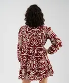 Robe courte manches longues en viscose froissée imprimée femme marron