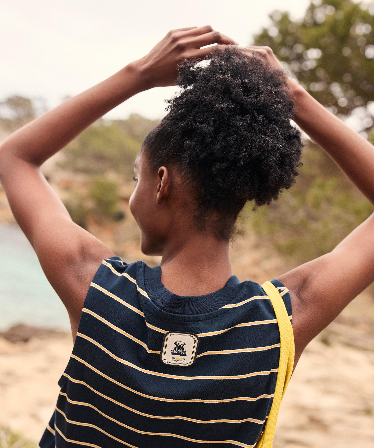 Adoptez une allure dynamique et élégante avec cette robe tee-shirt sans manches signée LuluCastagnette. Inspirée du débardeur marin, elle se pare de rayures bicolores intemporelles qui apportent une touche fraîche et tendance à votre dressing. Confectionnée en coton doux et respirant, cette robe femme offre un confort optimal au quotidien. Sa coupe légèrement évasée met la silhouette en valeur tout en assurant une grande liberté de mouvement. Idéale pour la saison estivale, cette robe courte se porte aussi bien avec des baskets pour un look casual qu’avec des sandales pour une tenue plus féminine. Logo métallique dans le bas.