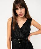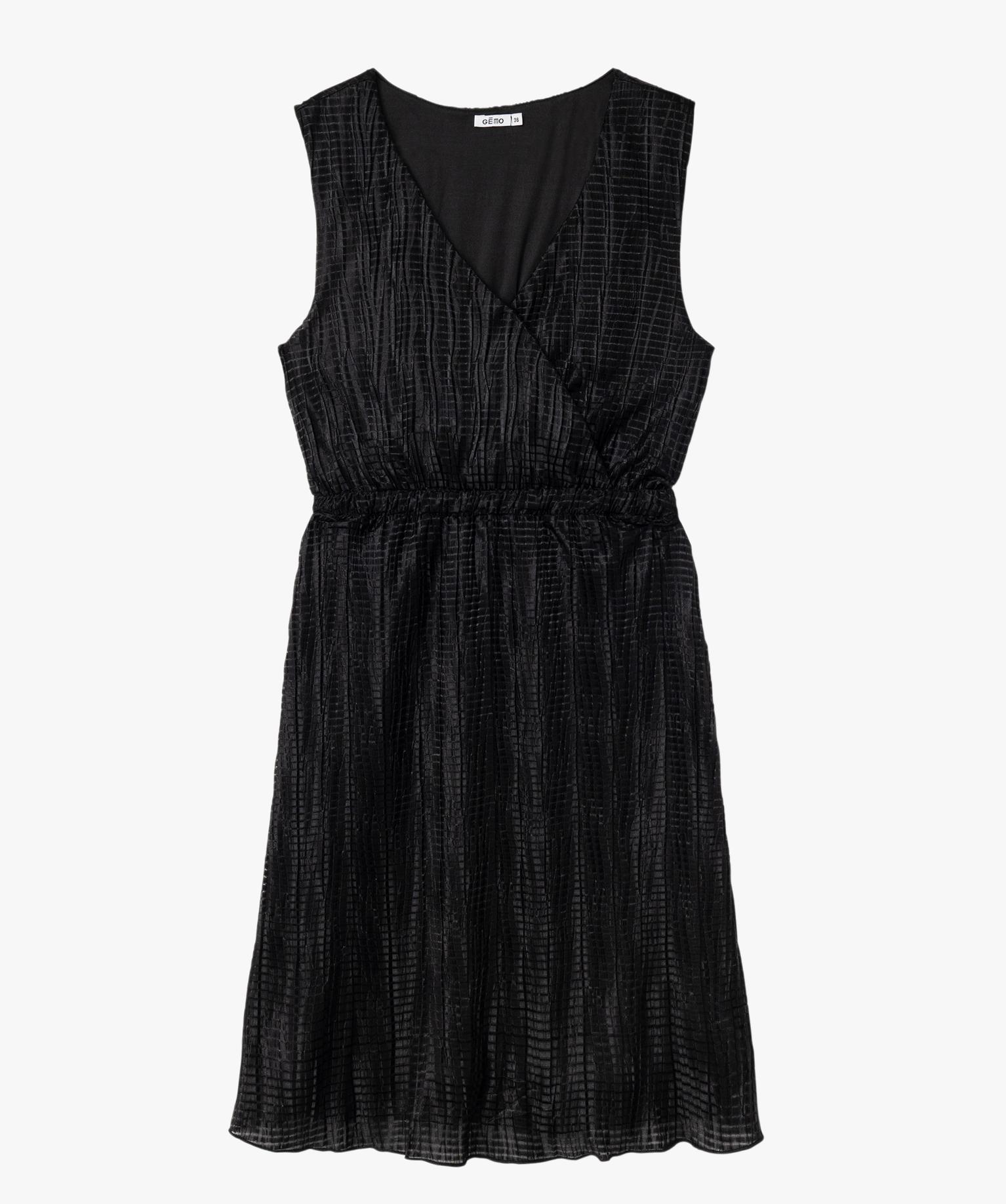 Robe courte sans manches en maille gaufrée scintillante femme noir