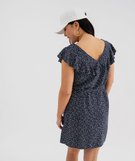 Robe courte sans manches en viscose fleurie à volants femme bleu marine