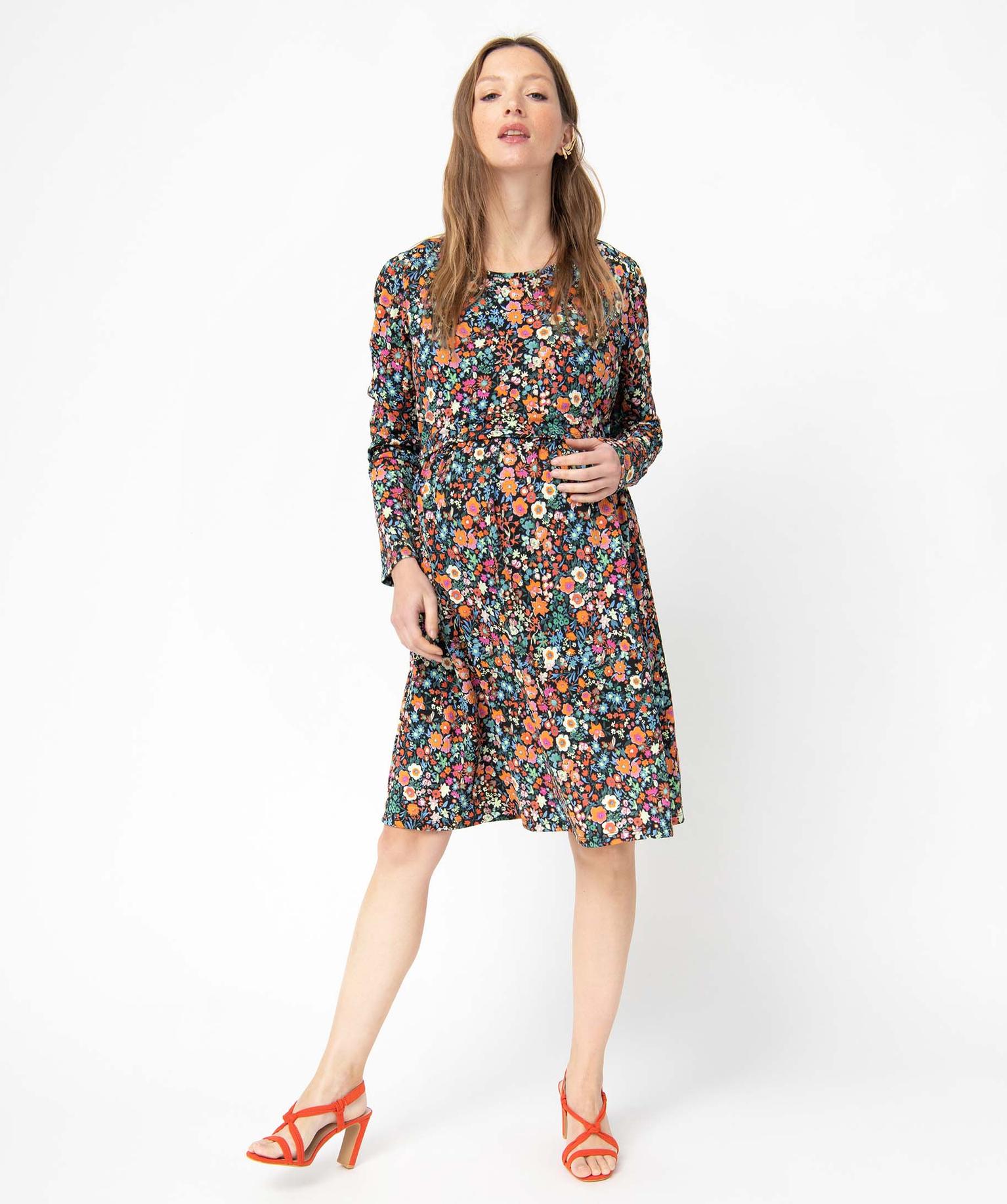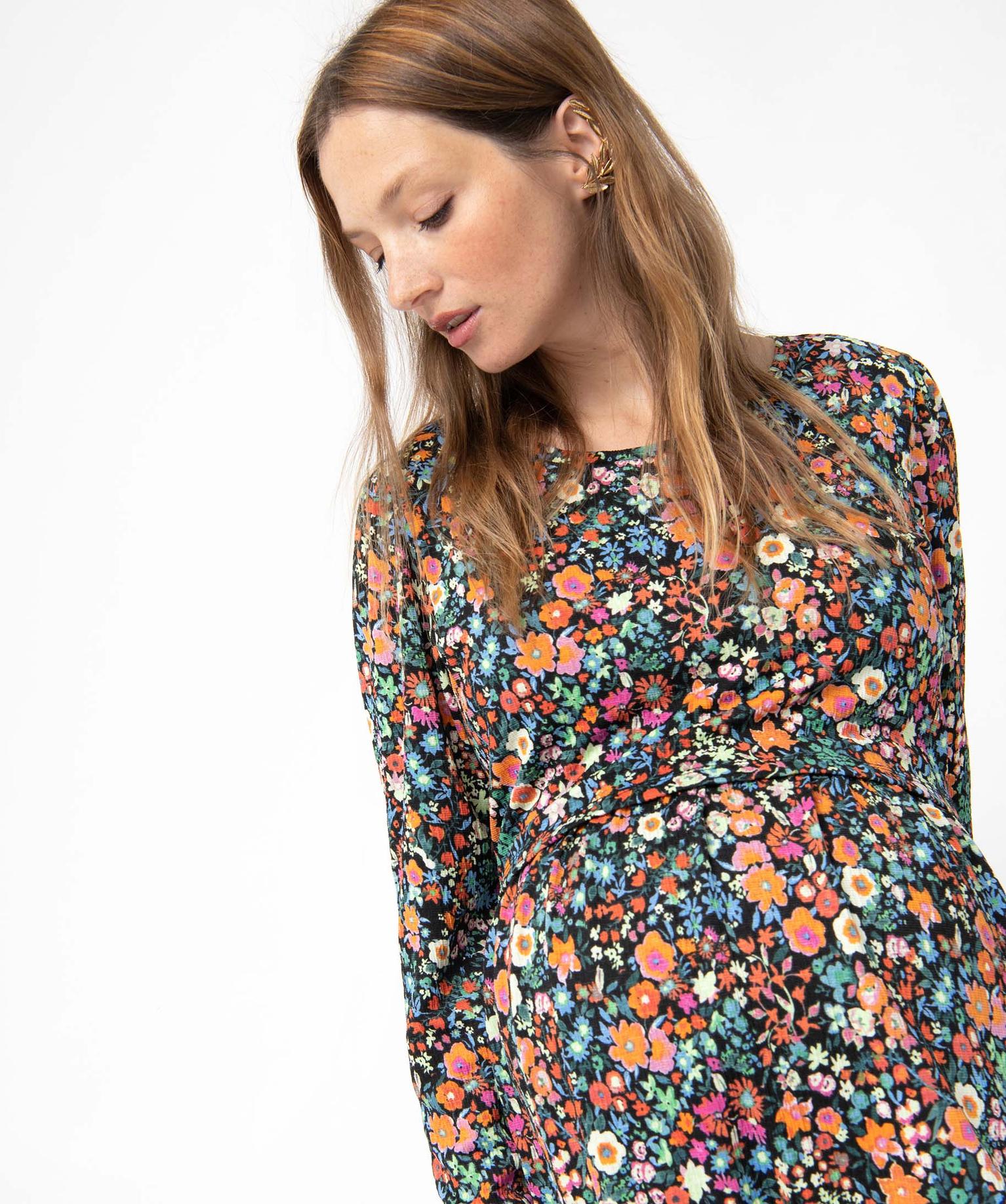 Cette ravissante robe d'allaitement vous offre un look féminin tout en vous permettant d'allaiter votre bébé facilement ! Confortable, elle est confectionnée dans une maille finement texturée et extensible. De fait, vous pouvez la porter pendant votre grossesse : elle valorise joliment vos courbes tout en vous assurant un maximum d'aisance. Le haut a été spécialement conçu pour mettre bébé au sein facilement grâce à son pan superposé. Stylée, la robe de maternité est déclinée dans différents motifs, à choisir selon vos préférences ou à collectionner ! Avec ses manches longues, elle vous accompagne en toutes saisons. À porter aussi bien avec des boots qu'avec une paire de baskets ! Fronces aux épaules et sous poitrine. Taille empire élastiquée. Ourlet surpiqué dans le bas.