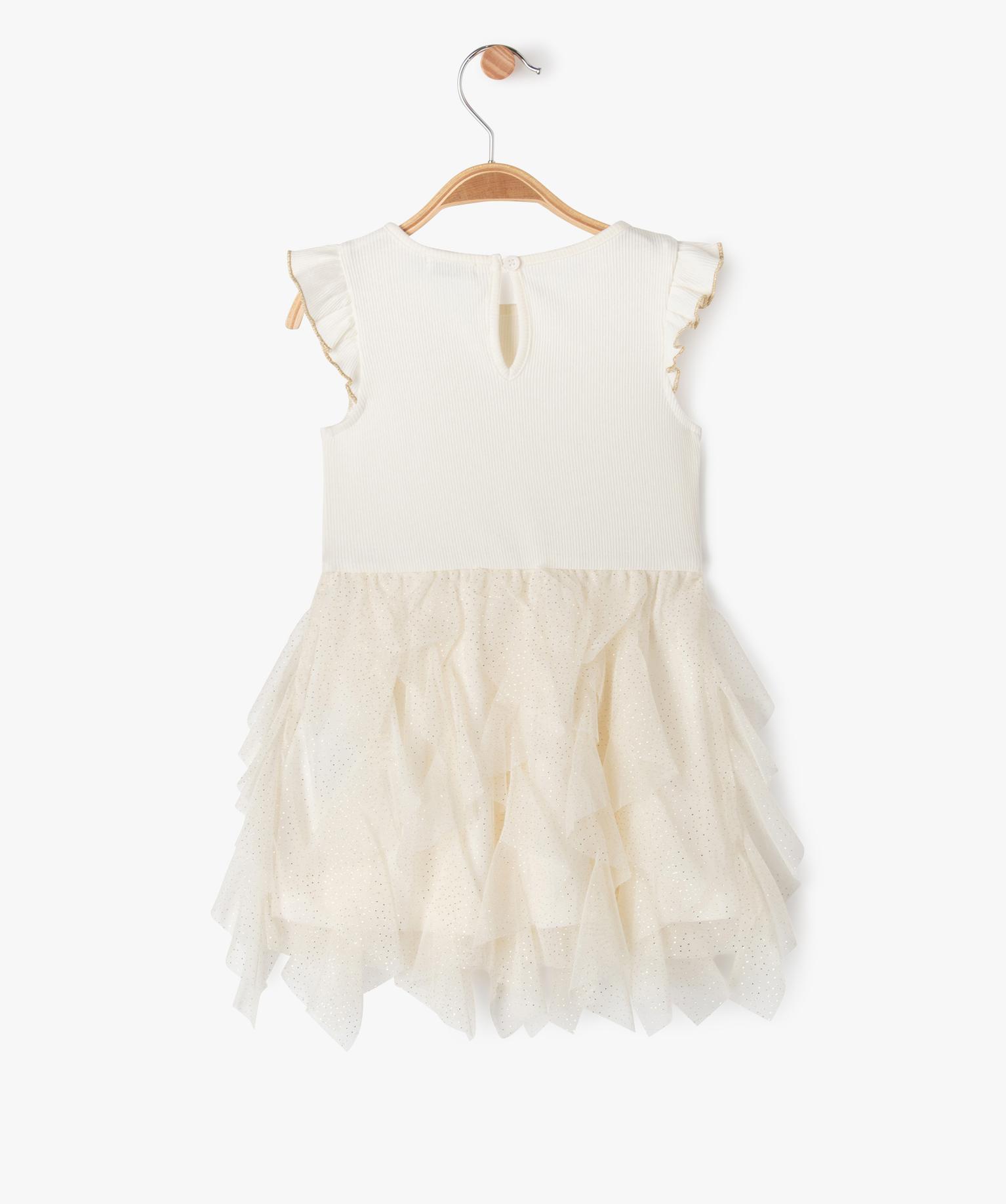 Robe de cérémonie avec jupe en tulle pailleté bébé fille ecru