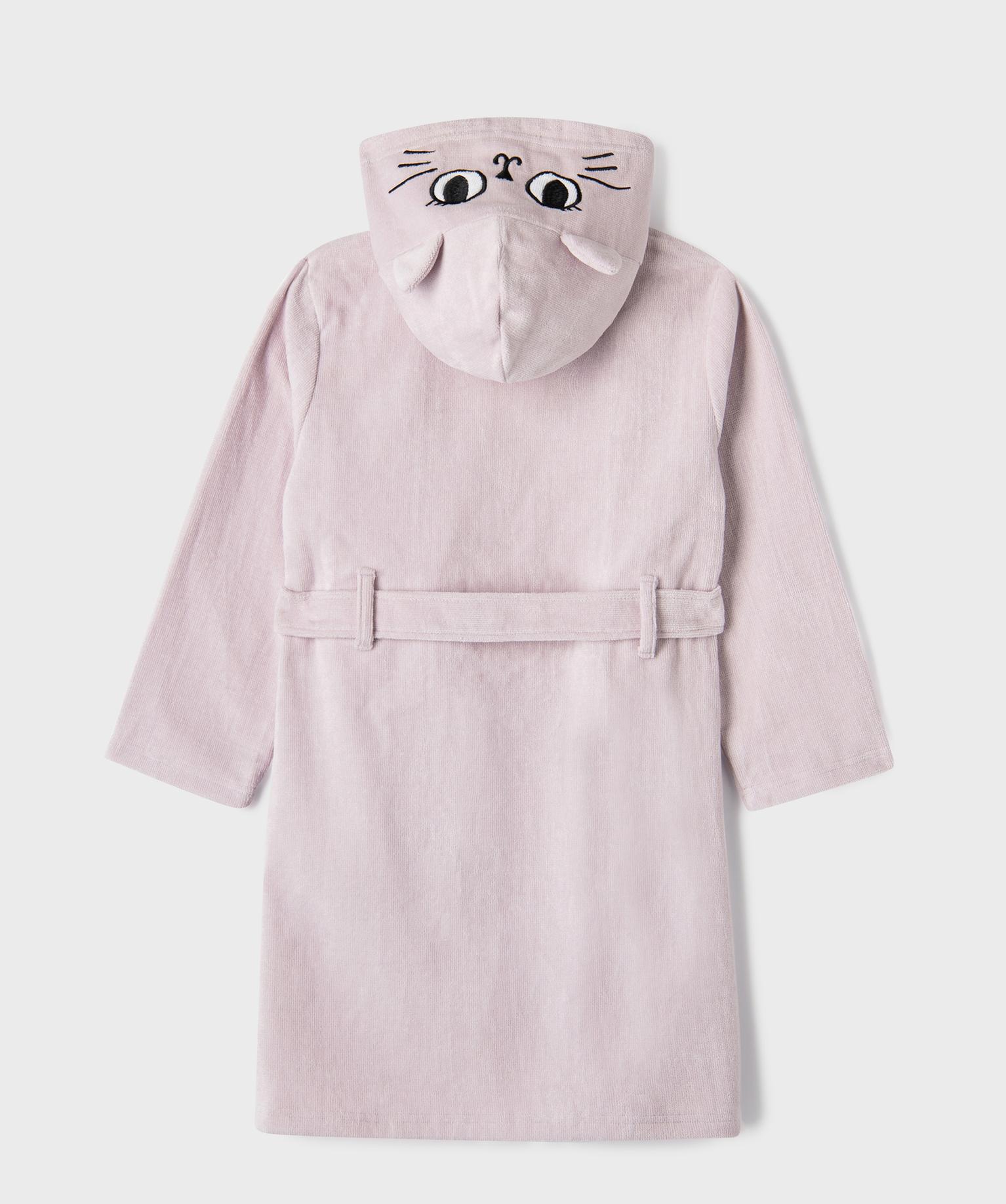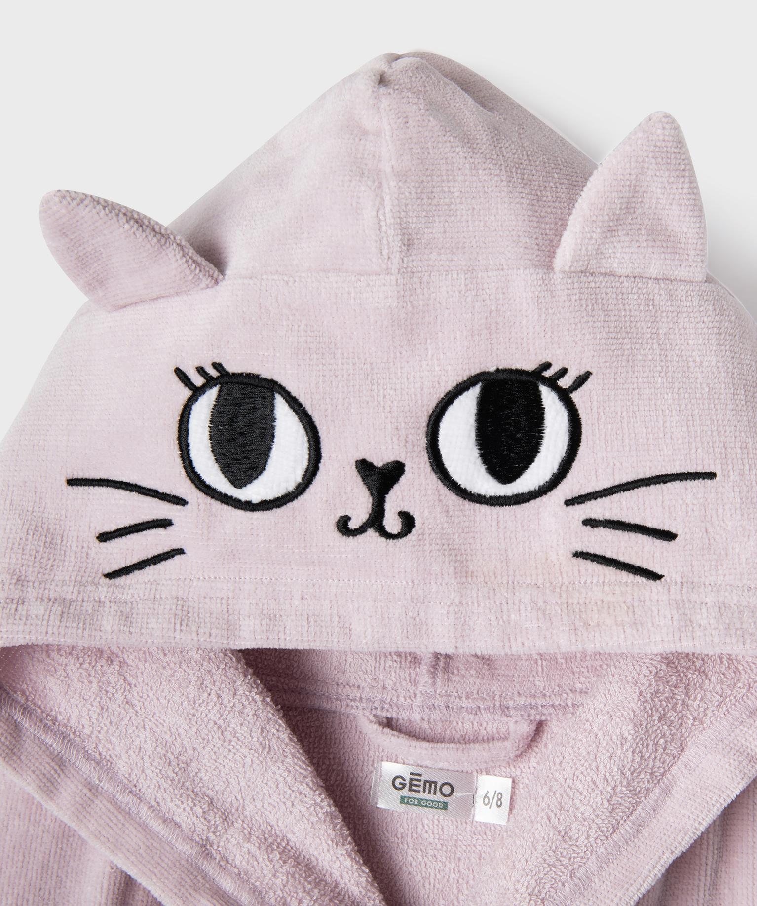 Robe de chambre à capuche motif chat fille violet clair
