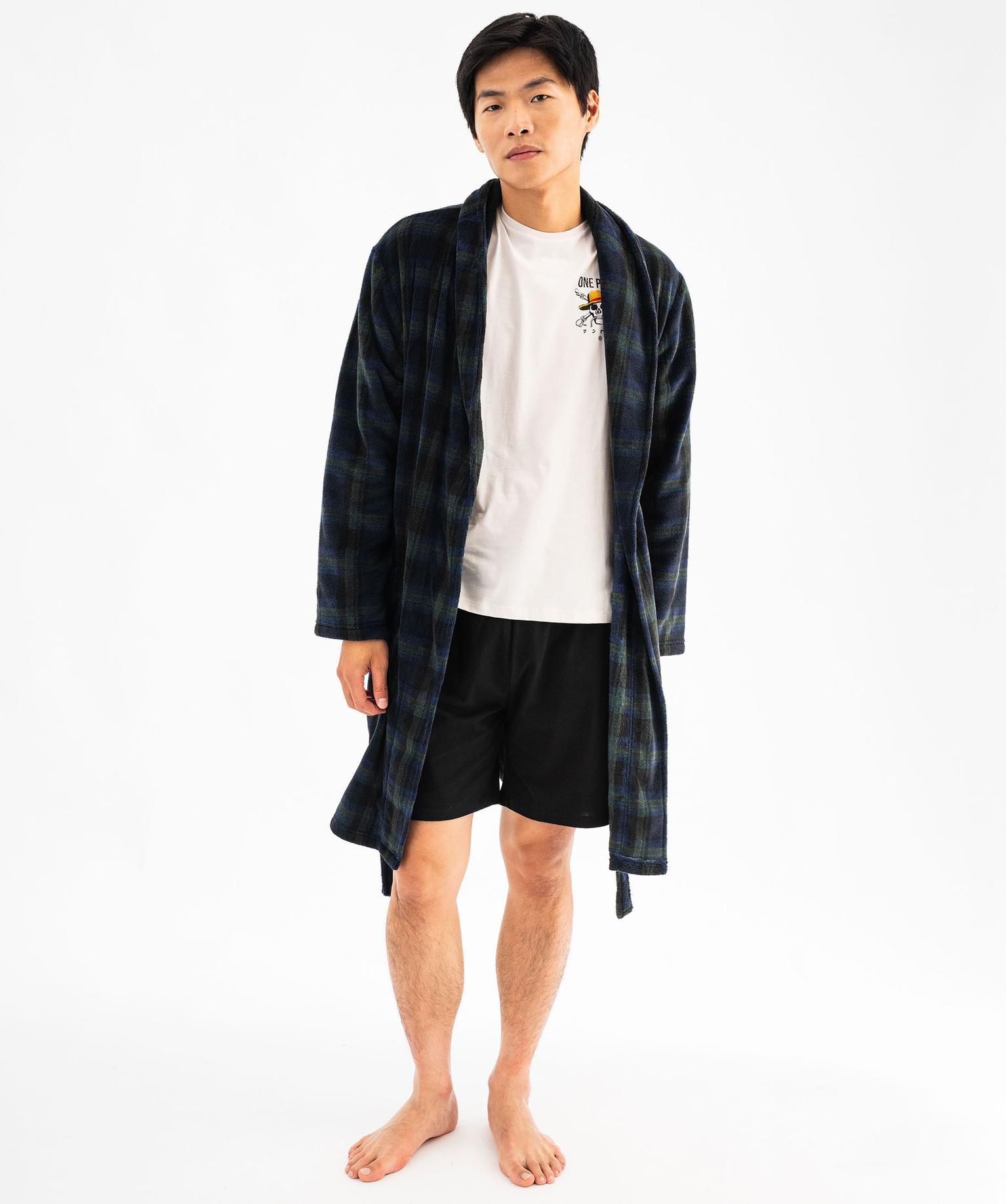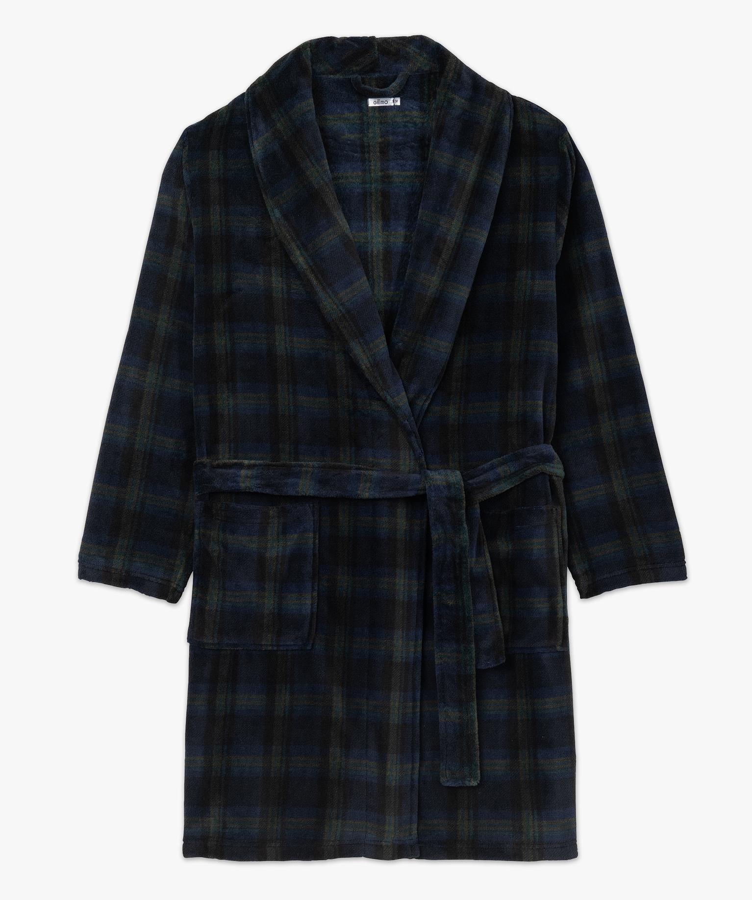Conservez une allure élégante jusque dans vos moments de détente grâce à cette sublime robe de chambre à motif tartan. Une robe de chambre en velours douce et confortable à enfiler par-dessus tous vos pyjamas et pyjashorts. Ce peignoir homme possède deux larges poches plaquées sur l’avant et se ferme facilement grâce à une ceinture à nouer cousue dans le dos.