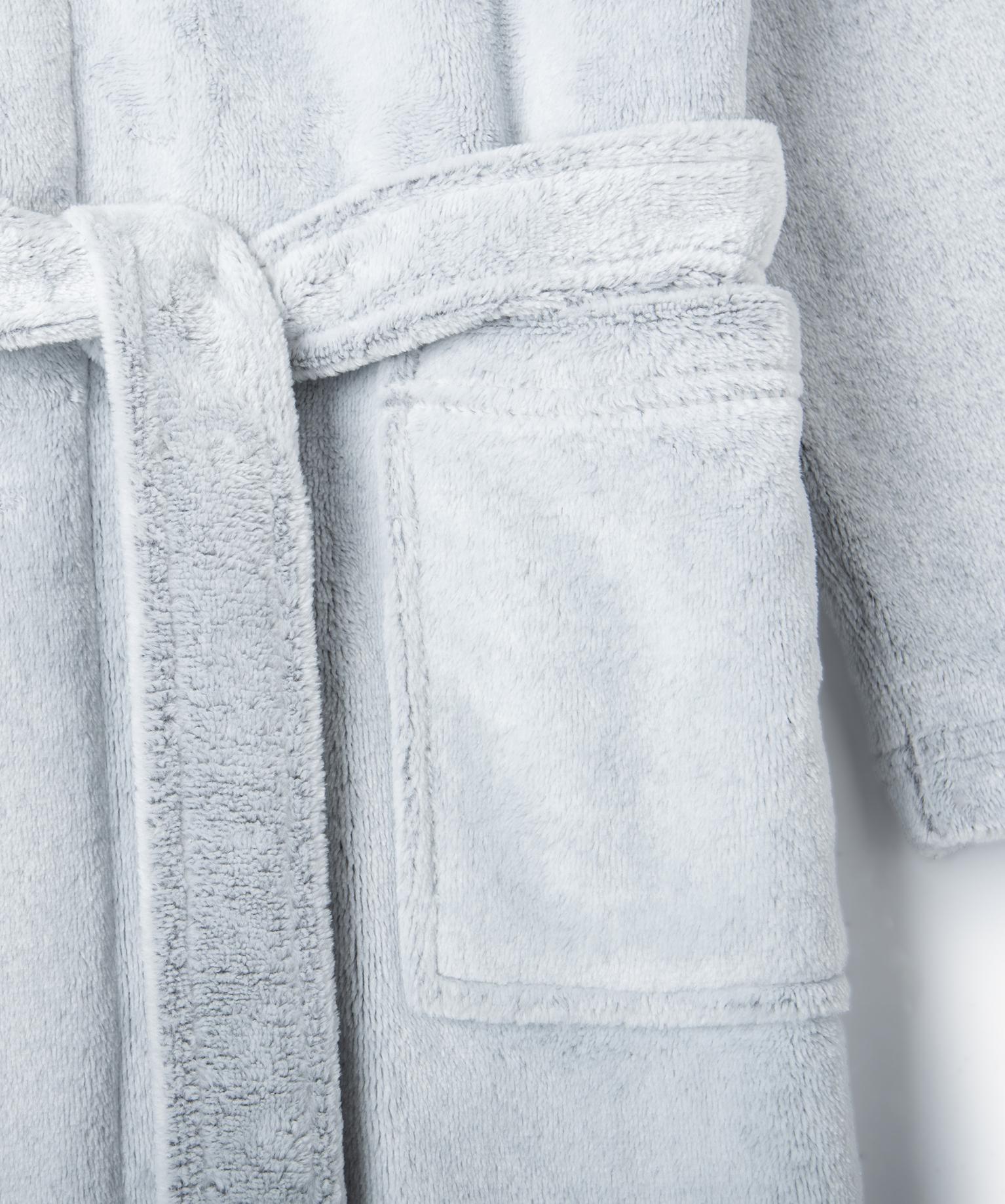 Robe de chambre enfant en maille peluche avec capuche gris