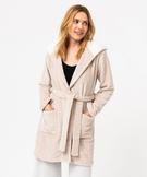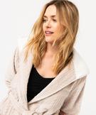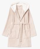 Appréciez la chaleur et le moelleux de la maille peluche de cette robe de chambre pour femme. Avec sa coupe courte et sa capuche, elle a tout d'une veste d'intérieur qui invite au cocooning. On note l'élégance de la maille texturée. Doublure capuche et revers de manches à poils longs. Ceinture sous passants à nouer. Nouette intérieure en satin. 2 poches plaquées sur les côtés.