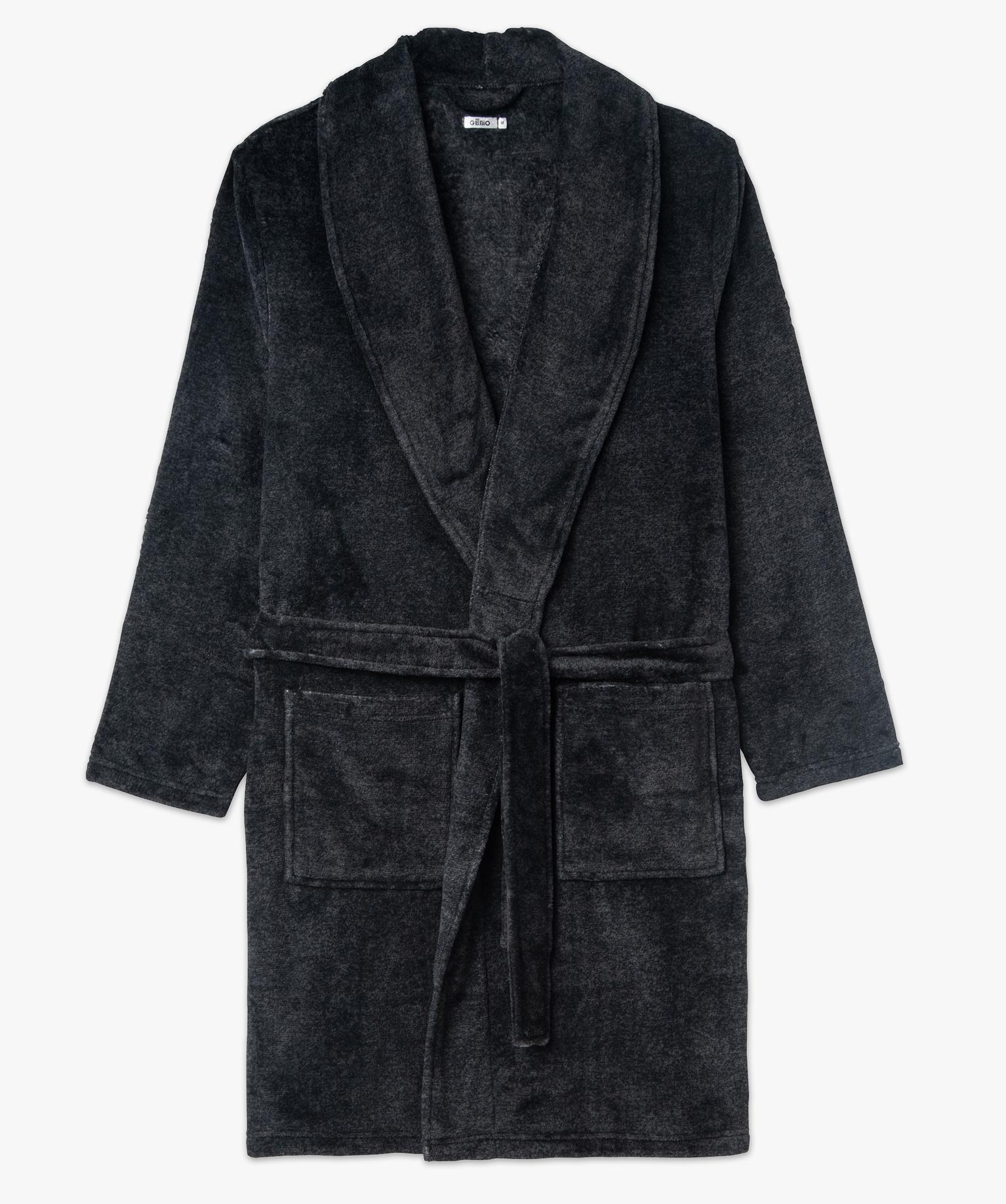 Robe de chambre peignoir en maille peluche homme gris