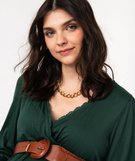 Féminine et confortable, cette robe pour femme enceinte vous séduira à tous les coups ! Elle est confectionnée dans un jersey de viscose stretch : fluide, doux et extensible. Elle présente une longueur midi, une taille élastiquée qui s'adapte à votre ventre et un joli buste cache-cœur rehaussé d'une dentelle crochetée ton sur ton. 100% compatible avec l'allaitement ! Ses manches longues présentent de jolis détails féminins : fronces aux épaules, poignets resserrés par élastique pour un effet volanté. Idéale pour un look casual chic, cette robe se mariera à merveille avec des Chelsea boots et un gilet en grosse maille par exemple.