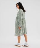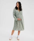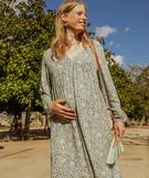 Cette robe fluide en viscose est la pièce idéale pour accompagner les futures mamans en saison estivale. Une robe de grossesse la fois élégante et décontractée qui souligne la silhouette avec élégance. Dotée d’un large col en V, elle sublime le décolleté tandis que des fronces sous la poitrine offrent une aisance parfaite pour le ventre. Cette robe de maternité possède des manches longues resserrées aux poignets par un élastique. Une robe midi décorée de motifs fleuris, à porter avec des sandales plates esprit spartiates.