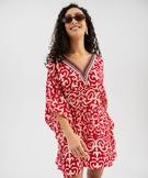 Laissez-vous séduire par cette robe de plage au superbe imprimé ethnique, parfaite pour un look bohème et élégant. Légère et fluide, elle est conçue en viscose pour vous offrir un confort optimal sous le soleil tout en sublimant votre silhouette. Cette robe de plage femme aux couleurs vibrantes affiche une coupe décontractée et un double décolleté en V avec liens à nouer dans le dos. Elle peut se resserrer à la taille grâce à une fine ceinture à nouer avec finitions pompons. Une robe légère idéale pour toutes les sorties plage.