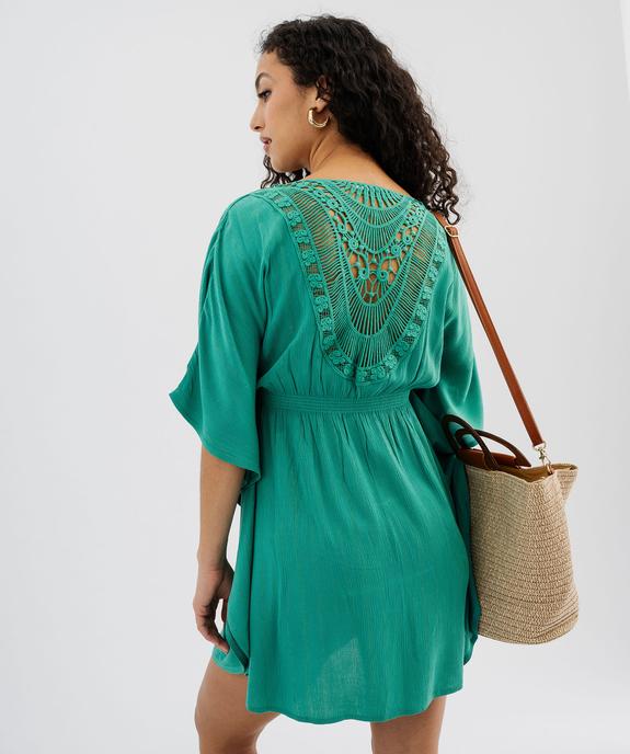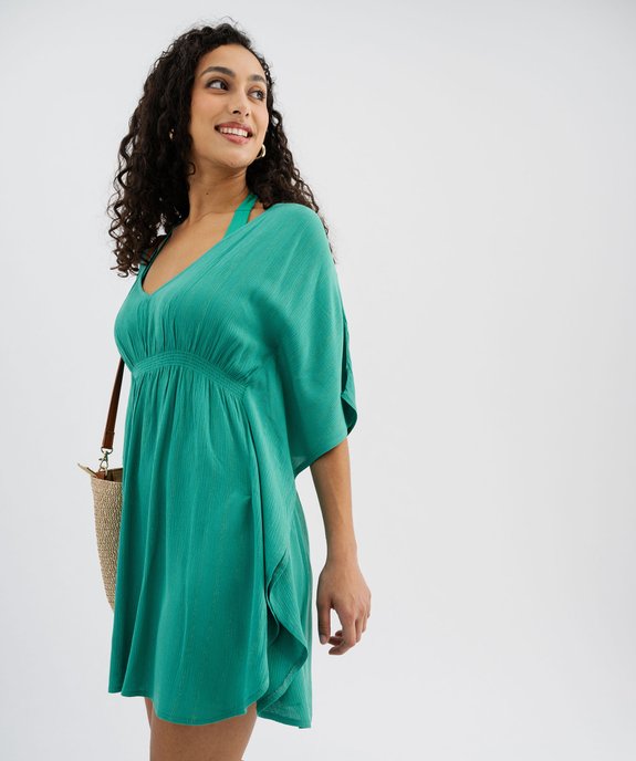 Robe de plage à rayures pailletées et dos brodé femme vert
