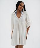 Robe de plage col V taille empire en viscose fluide femme blanc