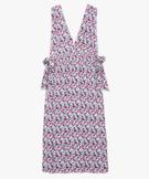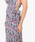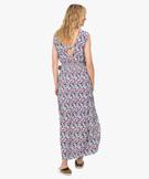 Cette robe longue très estivale, se joue en mode faussement sage. Cette robe de plage femme présente une belle longueur, largement fendue sur les côtés des jambes et possède des emmanchures échancrées. Seuls une bande sur les hanches et deux liens à nouer de chaque côté la maintiennent près du corps. On adore son profond col V devant et dans le dos. Les smocks sous poitrine et aux épaules vous apportent du confort et un tomber impeccable. Une robe imprimée, à porter idéalement avec des sandales plates.