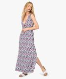 Robe de plage femme imprimée longue et échancrée rouge clair