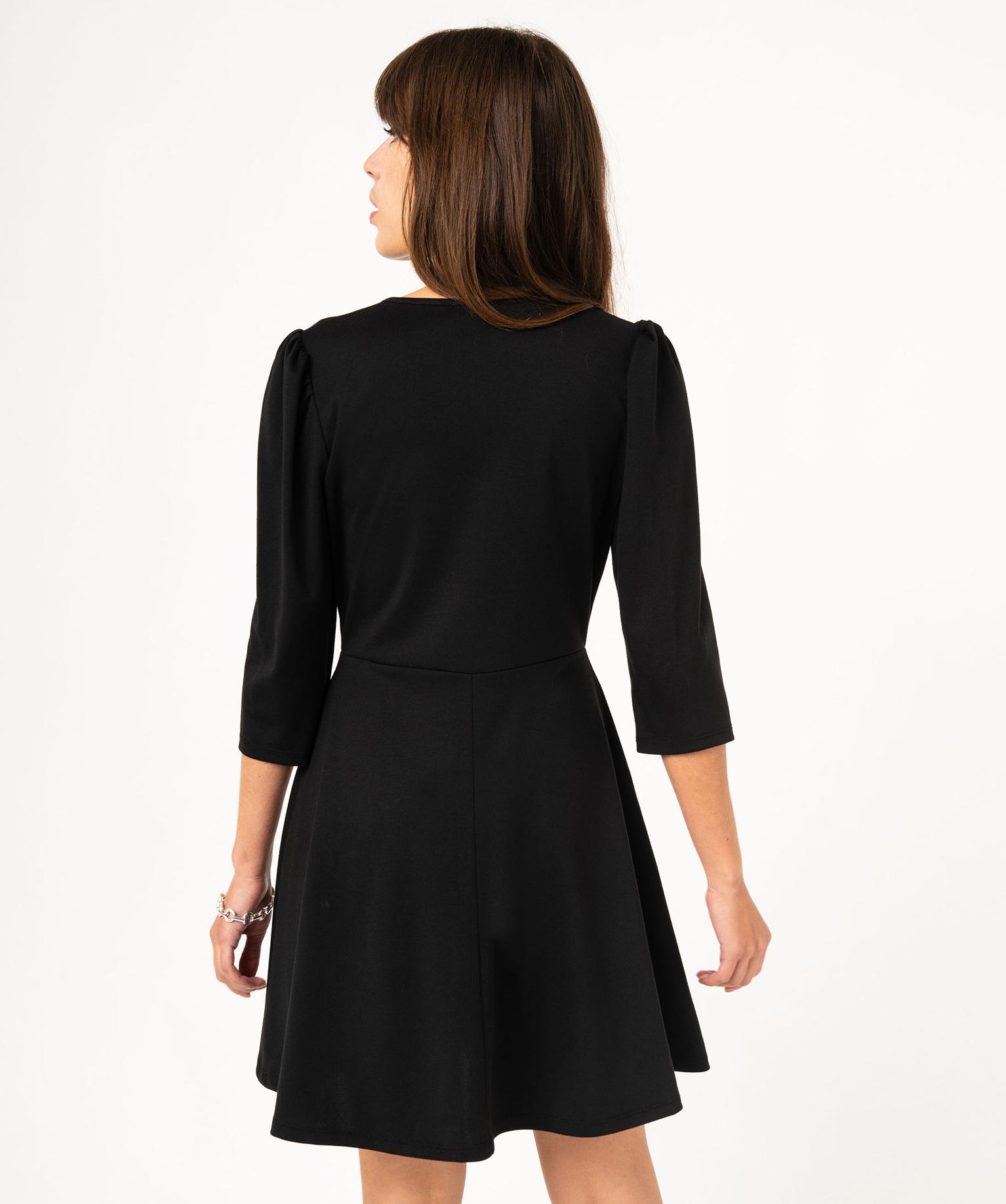Sublimez votre silhouette grâce à cette jolie robe de soirée pour femme imaginée par Gémo en collaboration avec l’influenceuse MCG. Une robe en maille extensible très confortable à porter, dotée de manches 3/4 avec fronces sur les épaules et pinces poitrine pour un tomber impeccable. Elle possède une ouverture goutte bordée de fil pailleté juste sous le col rond. Une robe de fête à porter avec de jolis collants et des escarpins à talon.