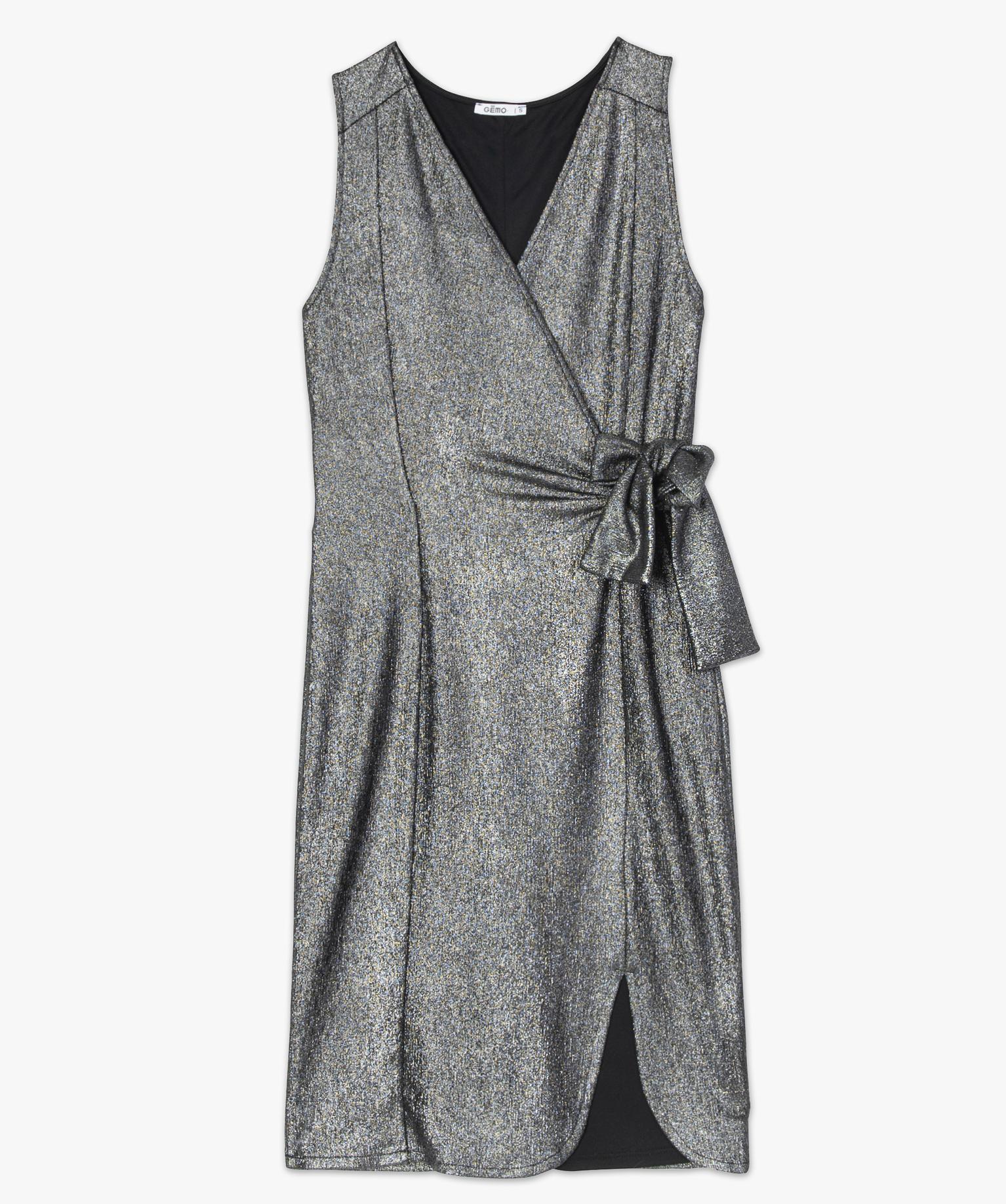Robe de soirée femme en matière pailleteée argente