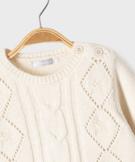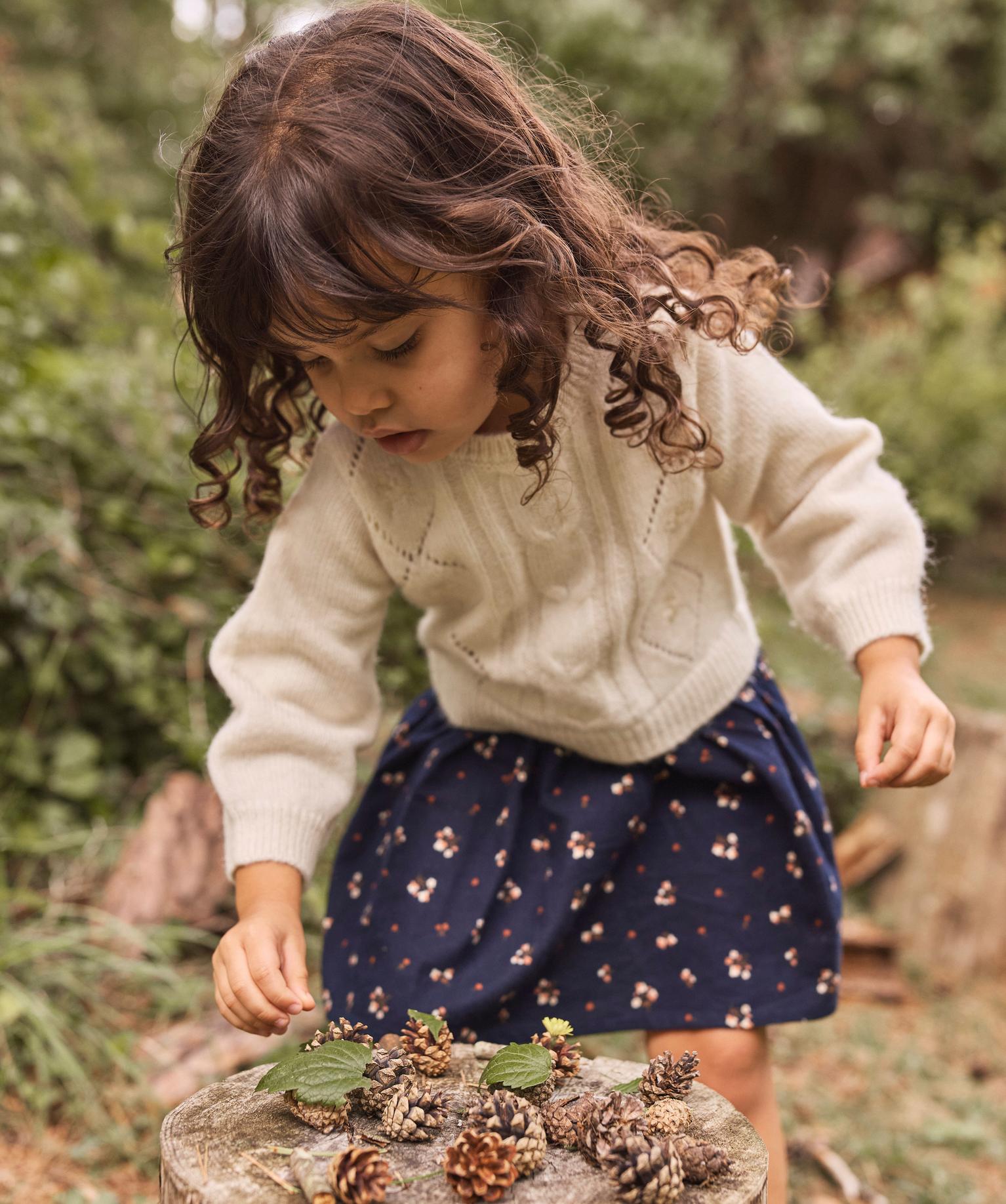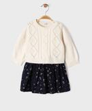 Craquez pour le look à la fois confortable et girly de cette robe bébé fille composée d’une partie pull et d’un jupe en coton. Une robe LuluCastagnette dont la partie pull affiche une jolie maille fantaisie sur la partie avant, d’élégantes perforations et de délicats motifs brodés en ton sur ton. La jupe ample est sublimée par des motifs fleuris ajoutant une note romantique. Cette robe à manches longues possède un col rond qui s’élargit grâce à 2 boutons sur l’épaule. Elle se porte avec des collants et une paire de boots.
