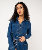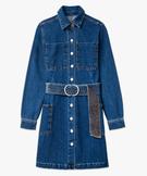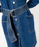 Robe en jean à manches longues avec large ceinture femme bleu clair