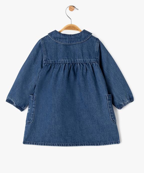 Robe en jean à manches longues et col Claudine bébé fille - LuluCastagnette bleu vif