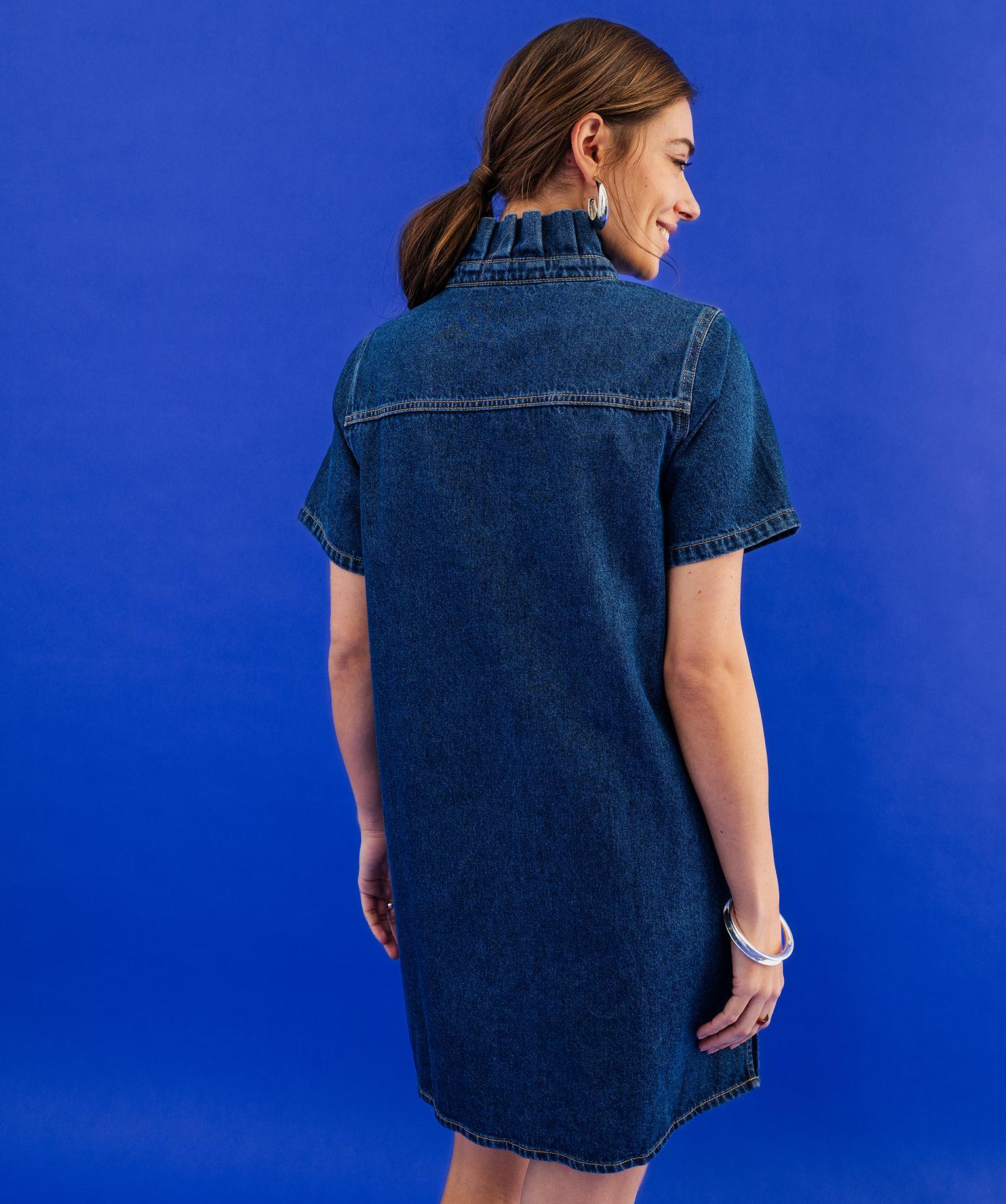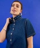 Robe en jean courte à col victorien femme bleu