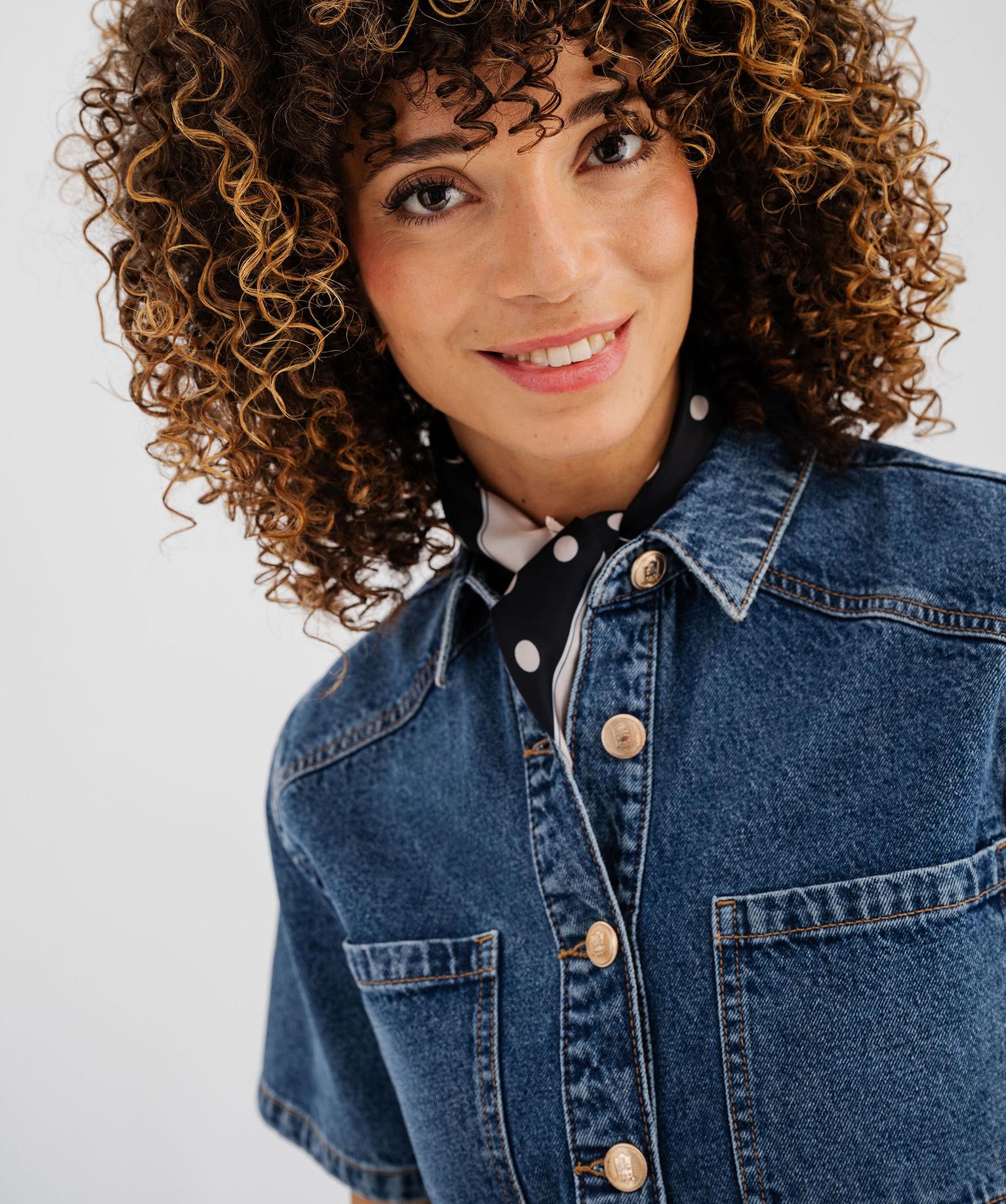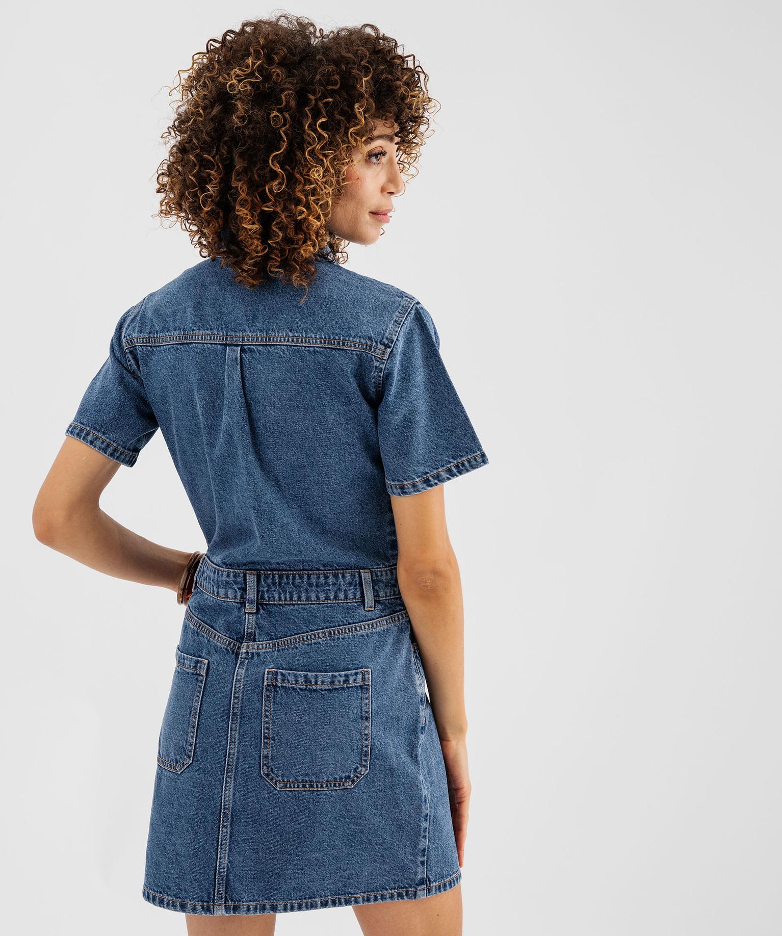 Robe en jean courte forme chemise femme - LuluCastagnette bleu