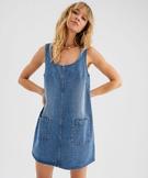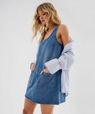 Robe en jean forme chasuble femme bleu