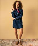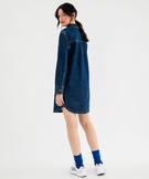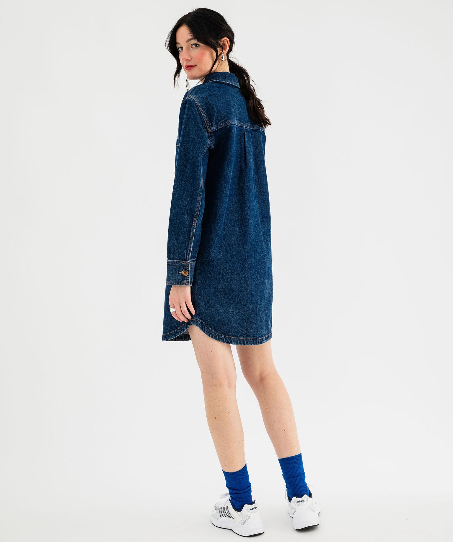 Robe en jean manches longues col chemise femme bleu