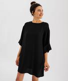 Légère et fluide, cette robe femme en maille texturée est idéale pour un look chic et féminin. Sa coupe droite et ses manches 3/4 à larges revers mettent en valeur la silhouette avec élégance. Le col rond avec bouton et fente au dos ajoute une touche de raffinement tout en facilitant l'enfilage. Une robe courte un peu loose à porter avec des bottines pour un style citadin ou des escarpins pour une occasion formelle.