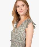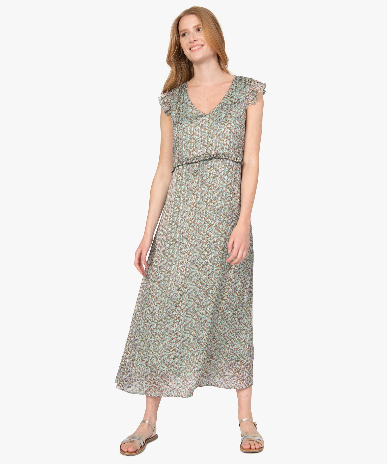 Robe femme à motifs fleuris et rayures pailletées kaki fonce