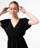 Robe femme en maille gaufrée avec double décolleté cache-coeur noir