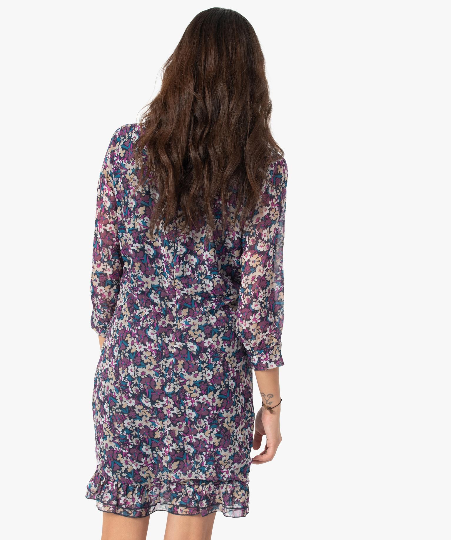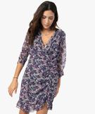 Quoi de mieux qu’une robe fleurie pour vous offrir une allure féminine en un clin d’œil ? Cette robe en voile sublime votre silhouette grâce à son décolleté en V façon cache-cœur et sa partie jupe drapée sur l’avant avec volant dans le bas. Cette robe pour femme possède des manches ¾ resserrées par un bais. Elle se ferme par zip invisible dans le dos. Une robe imprimée qui se plie à toutes vos envies, elle se porte aussi bien avec des escarpins qu’avec des baskets !