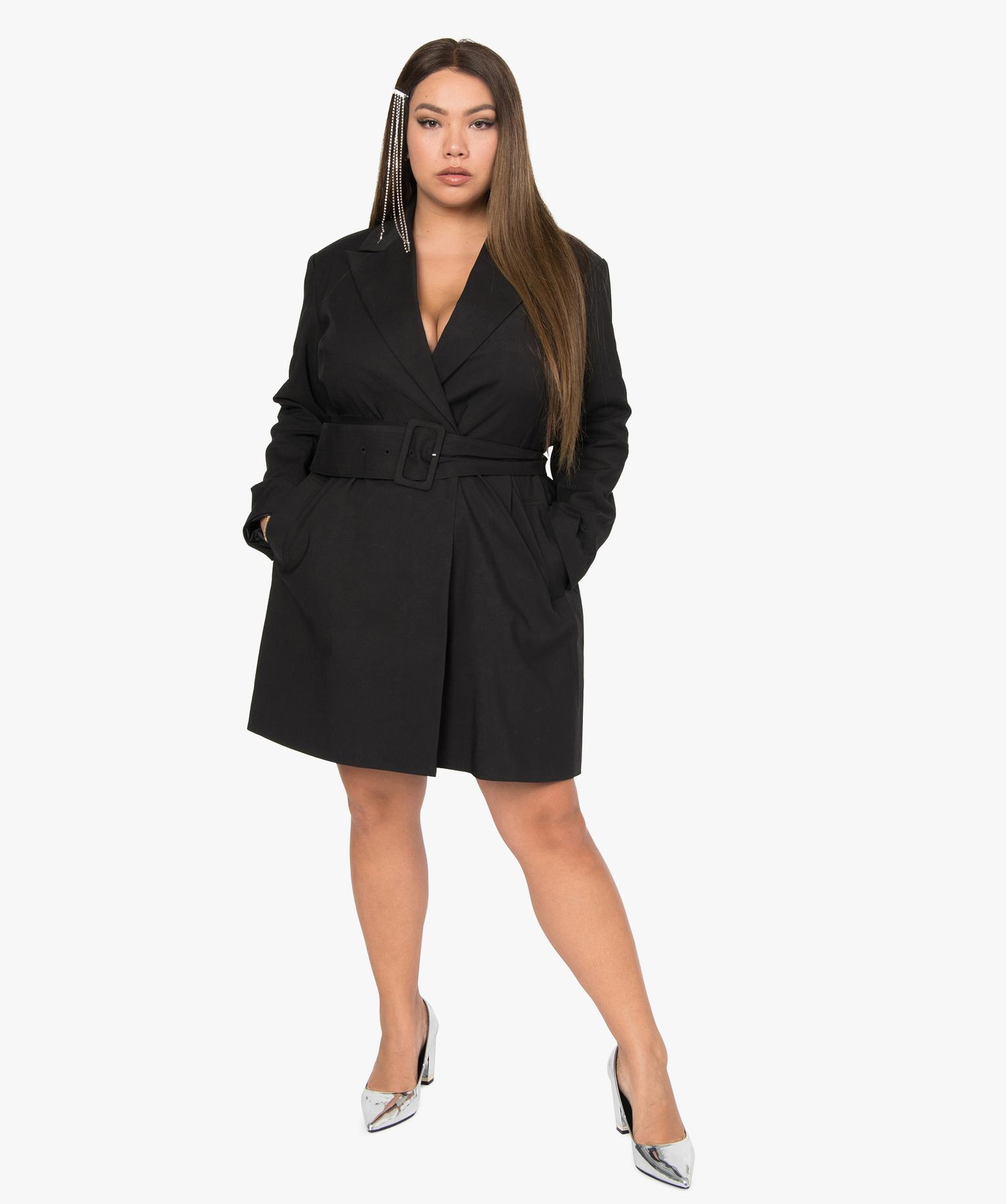 Robe femme forme blazer ceinturée - Gémo x Lalaa Misaki noir