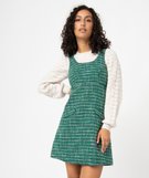 Craquez pour l’esprit « couture » de cette jolie robe pour femme. Une robe à bretelles ajustée au niveau du buste et légèrement évasée sur la partie basse. Elle est confectionnée dans une matière aspect tweed très élégante et agrémentée de deux fausses poches à rabat sur l’avant. Une robe courte d’inspiration vintage à porter avec des boots vernis à talon flare pour une allure seventies au top de la tendance ! Pince poitrine. Fermeture par zip invisible sur les côtés.