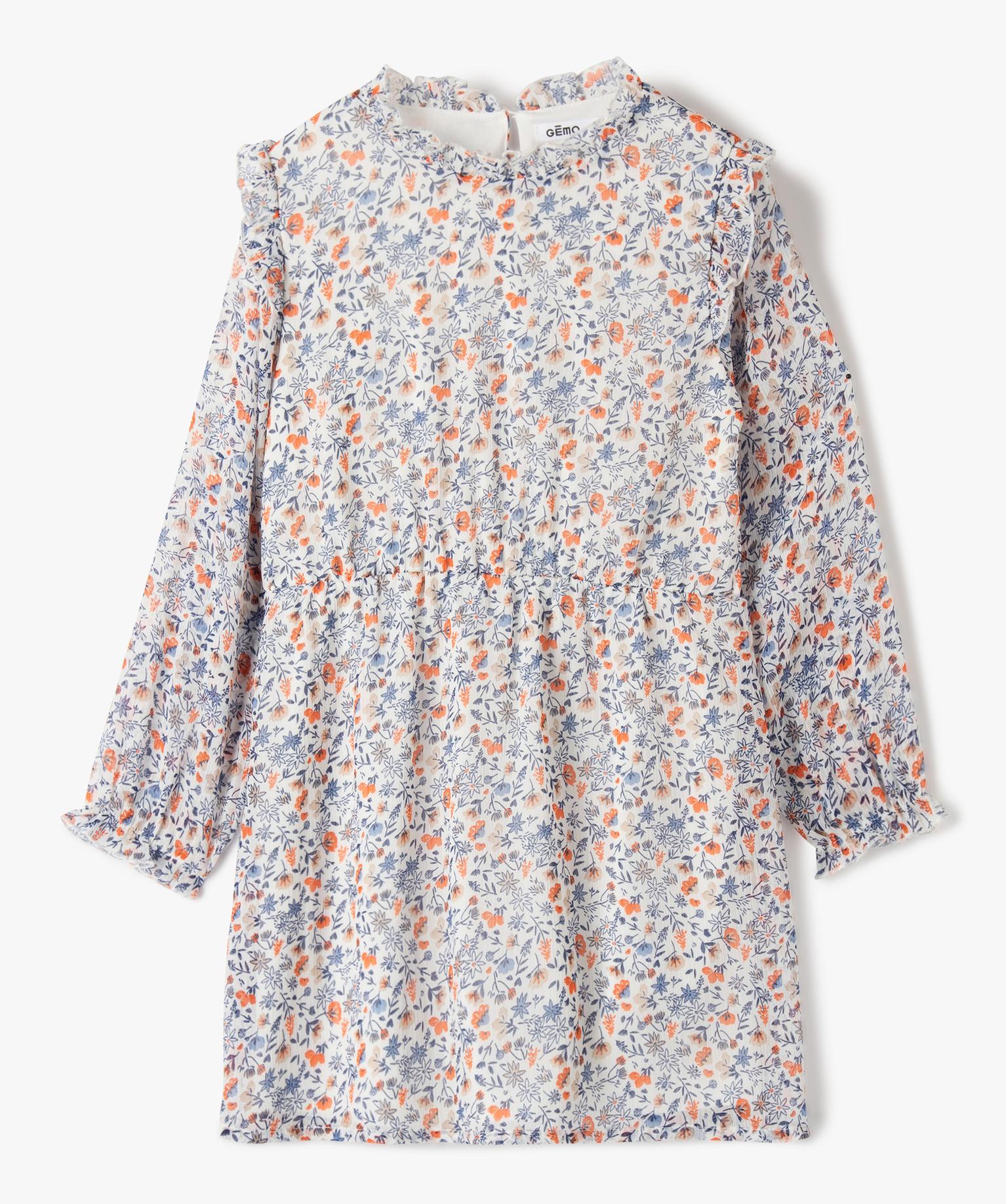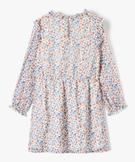 Robe fille à manches longues en voile imprimé et volants blanc chine