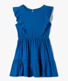Robe fille avec volants sur les épaules et dans le bas bleu
