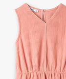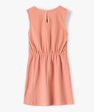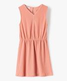 Hyper confortable, cette robe pour fille est avant tout remarquable par son look. On est sous le charme de sa matière gaufrée, légère et extensible. La taille élastiquée apporte de la structure tout en restant parfaitement confortable. La robe courte et sans manches possède un col en V souligné d'un biais doré qui se poursuit sur le devant du buste pour une note graphique et girly. Déclinée dans des coloris doux et tendance, cette robe se prête aussi bien aux grands événements avec des ballerines par exemple, qu'au quotidien avec des tennis en toile ou des sandales.