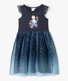 Robe fille en tulle et coton - La Reine des Neiges noir chine