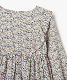 Robe fleurie à manches longues et volants fille kaki