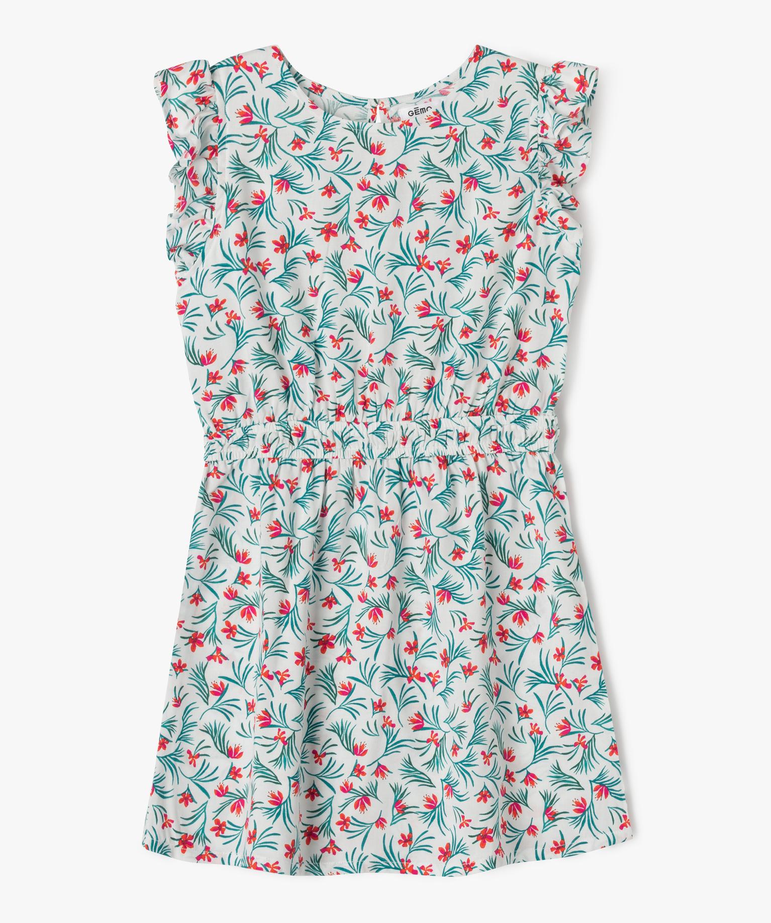Robe fluide fleurie à volants fille[MISSING] blanc chine