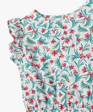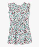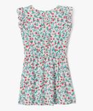 Légère, confortable et joliment décorée de fleurs, cette robe fille est une pièce idéale pour les beaux jours. La robe courte présente un haut un peu loose, marqué à la taille par un large élastique et fermé dans le haut du dos par un bouton avec fente. Les emmanchures sont agrémentées de jolis volants qui ornent délicatement les épaules. La partie jupe est légèrement évasée. Une robe sans manches à porter aussi bien avec des tennis en toile qu'avec des sandales !