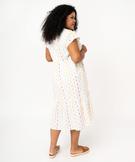 Robe grande taille à manches courtes et broderies femme blanc
