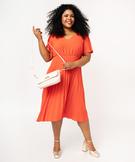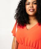 Robe grande taille manches courtes fluide et plissée femme orange clair