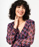 Cette jolie robe imprimée apportera une belle touche de couleur dans le dressing féminin. Une robe en voile à la coupe ultra féminine avec son haut cache-coeur et son bel effet drapé sur la jupe. Cette robe femme possède des épaulettes en mousse et des manches longues non doublées qui offrent un joli jeu de transparence. Elle s’enfile facilement grâce à un zip invisible sur le côté et possède une taille élastiquée au dos très confortable. Une robe à manches longues à porter avec des escarpins à talon.