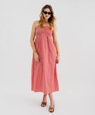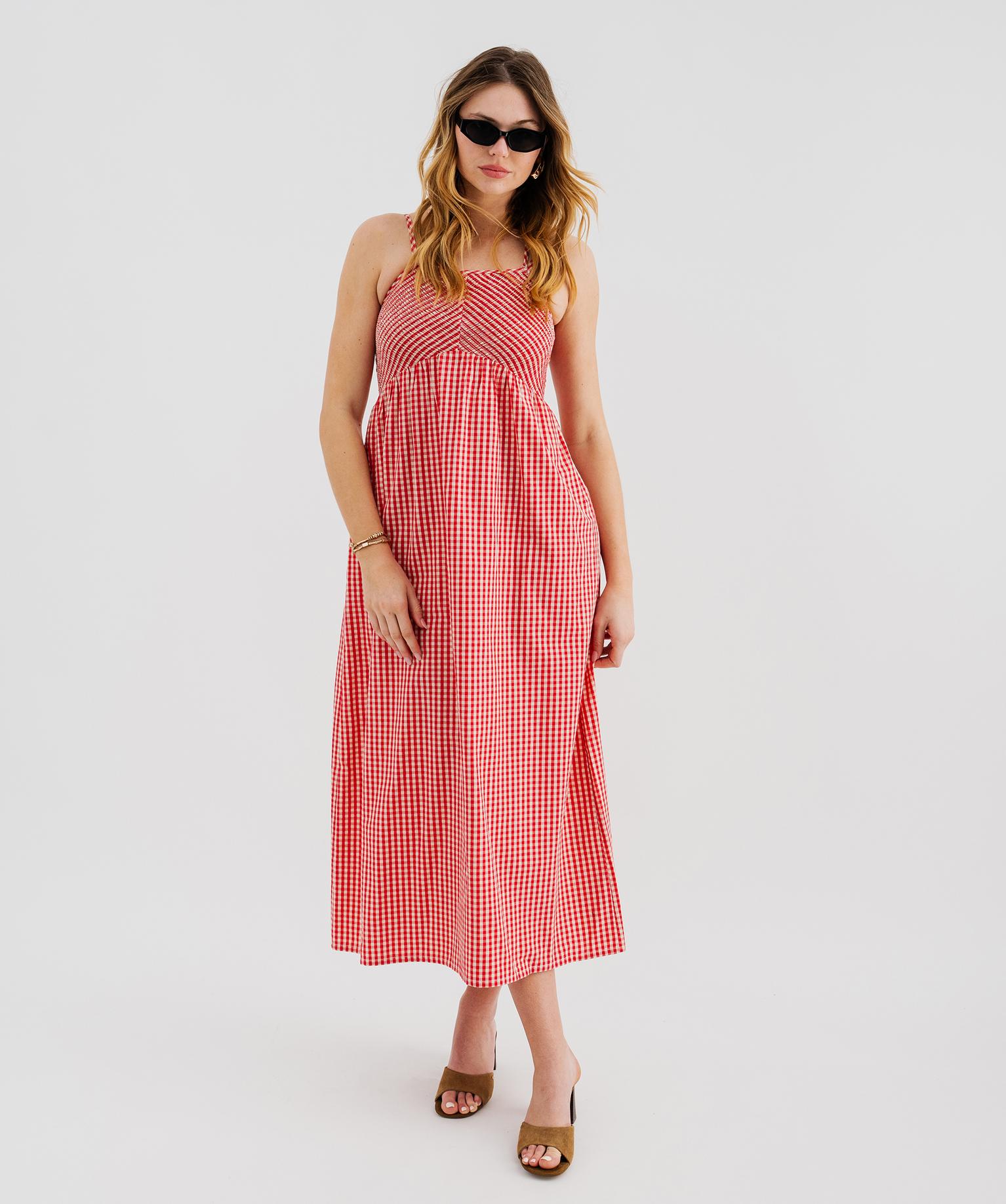 Robe longue à fines bretelles à motif vichy femme rouge