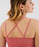 Robe longue à fines bretelles à motif vichy femme rouge