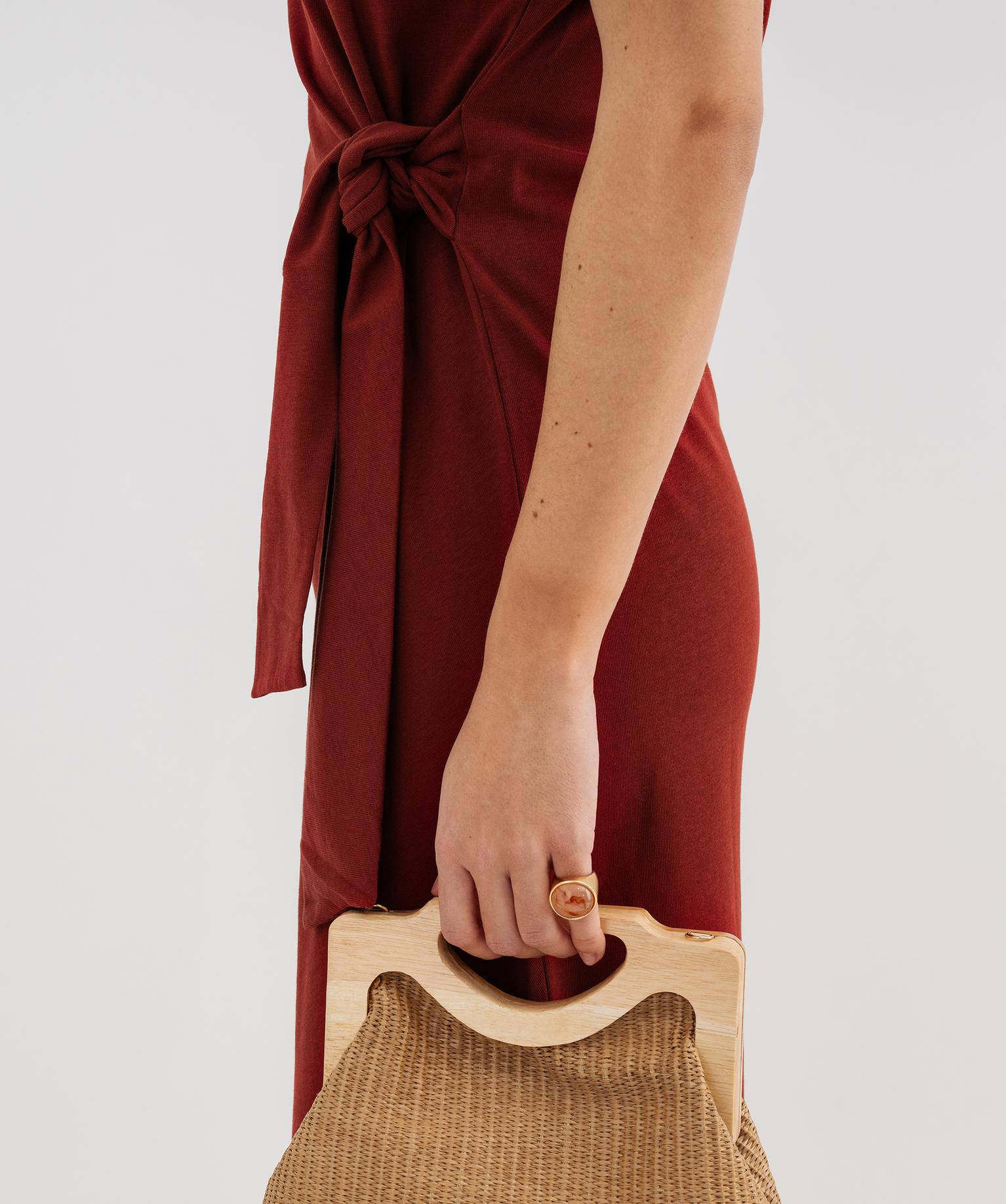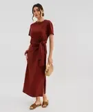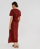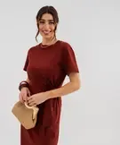 Robe longue à manches courtes en jersey de coton femme bordeaux