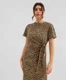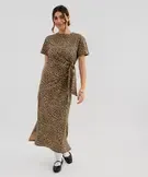 Robe longue à manches courtes en jersey de coton femme marron