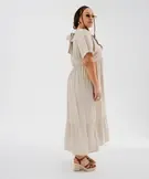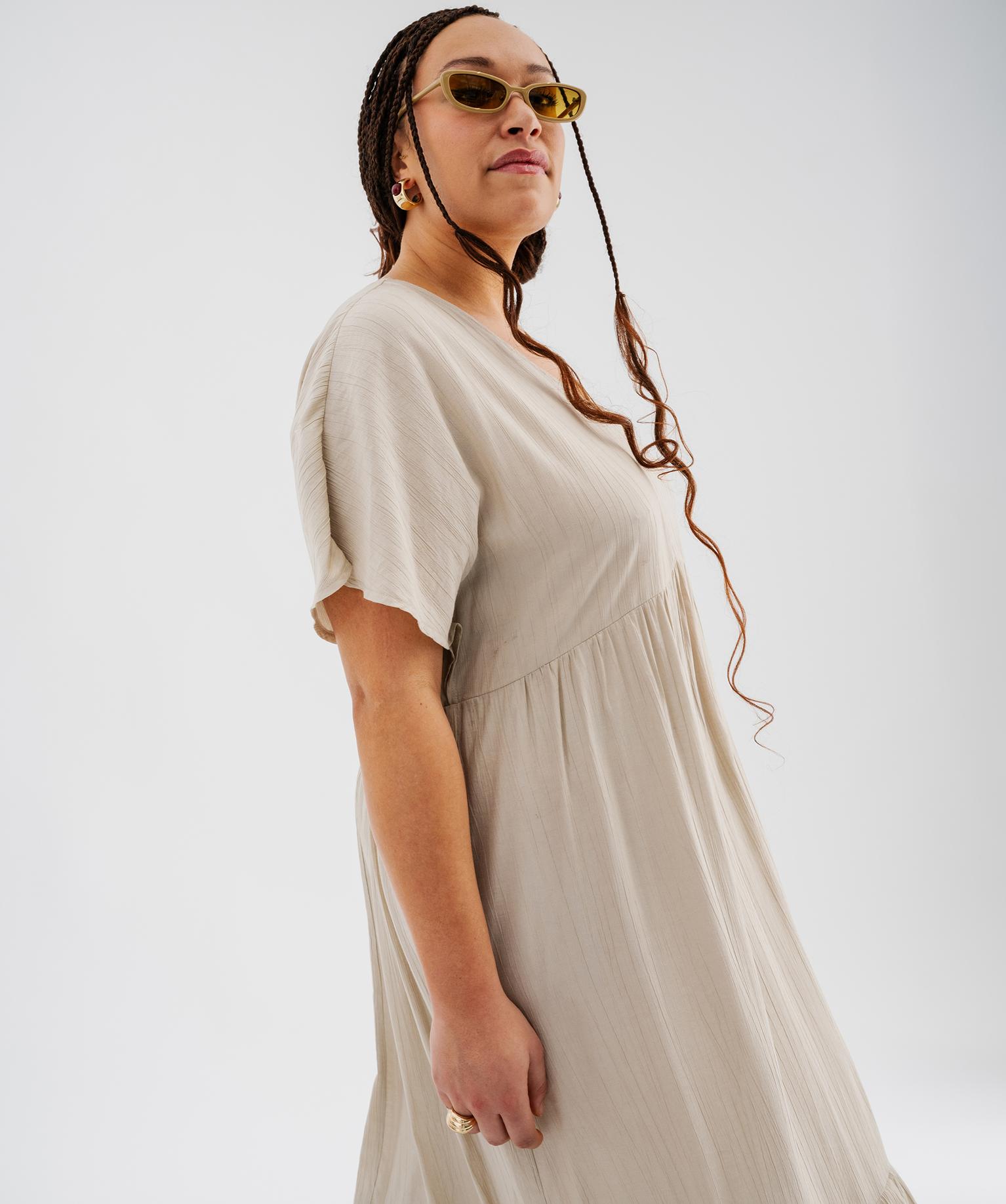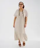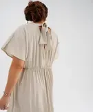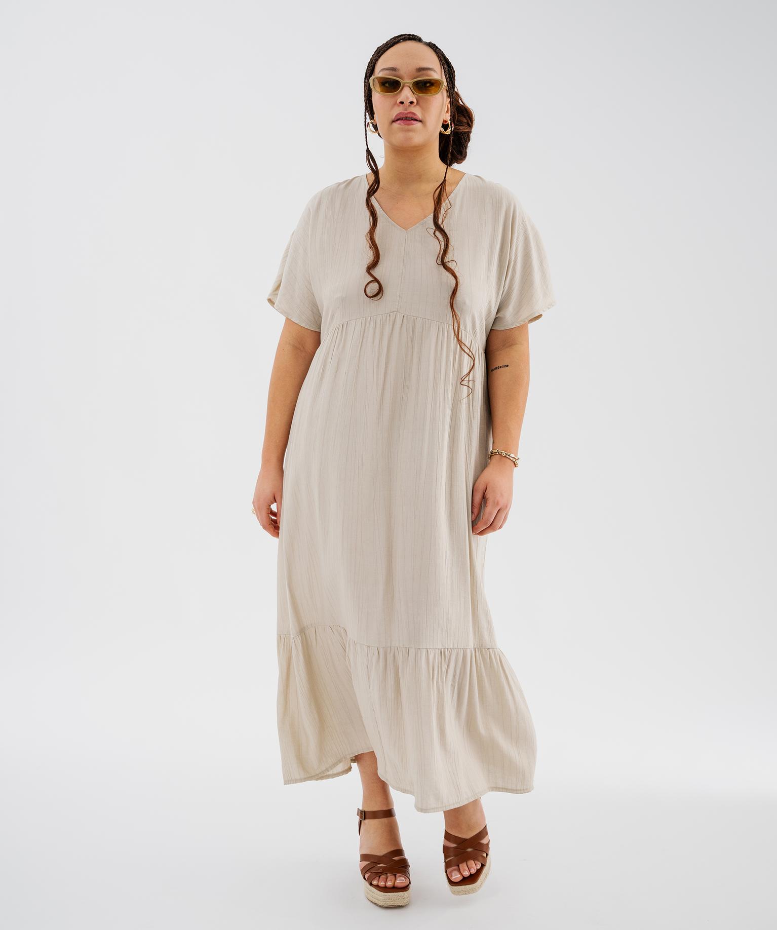 Robe longue à manches courtes en tissu texturé femme grande taille beige
